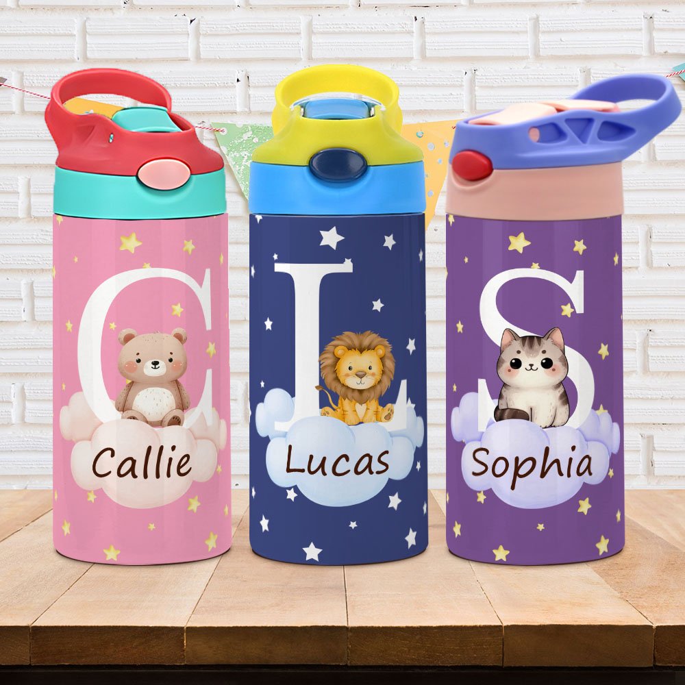 Den har ett tema med fantasifulla nebulosor och skogsdjur, och designen är full av barnslighet och fantasi. Varje vattenflaska kan anpassas med barnets namn och initialer, vilket gör den unik och exklusiv för ditt barn. Den drömska nebulosabakgrunden kompletterar de livliga och söta skogsdjursillustrationerna, som inte bara kan stimulera barns nyfikenhet utan också bli ett modernt tillbehör i deras dagliga liv.