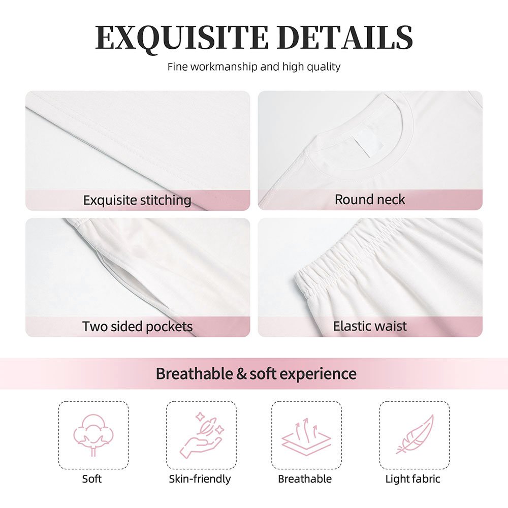 Pyjamasen är tillverkad av 95% polyester + 5% spandex och är sval och andningsbar, perfekt för avslappnade kläder och ger dig komfort när du sover eller kopplar av hemma.