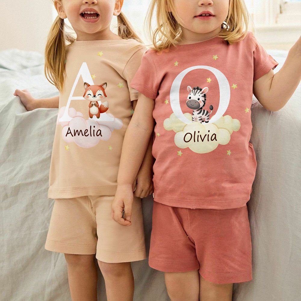 Temat är fantasifulla nebulosor och skogsdjur, och designen är full av barnslighet och fantasi. Varje pyjamas kan skräddarsys med barnets namn och initialer, vilket gör den unik och exklusiv för just ditt barn. Den drömska nebulosabakgrunden kompletterar de livliga och söta skogsdjurillustrationerna, som inte bara kan stimulera barns nyfikenhet utan också bli en trendig outfit i deras dagliga liv.