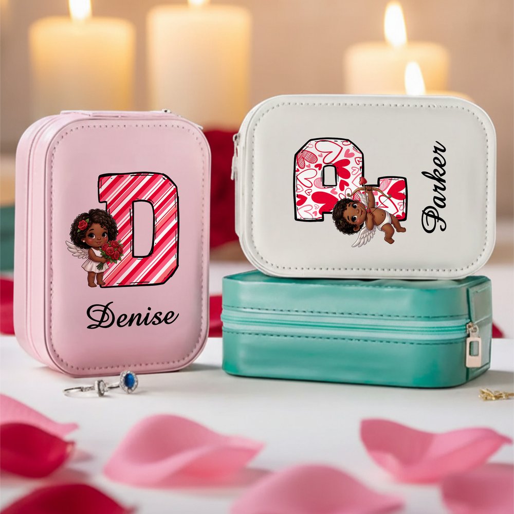 Vårt smyckeskrin har ett klassiskt och mångsidigt färgschema, prytt med ett romantiskt och bedårande Cupid-ängelmotiv, kompletterat med element som rosor och hjärtan, som perfekt fångar den söta atmosfären på alla hjärtans dag. Gör den personlig med dina initialer och ditt namn för att skapa en helt unik minnessak.