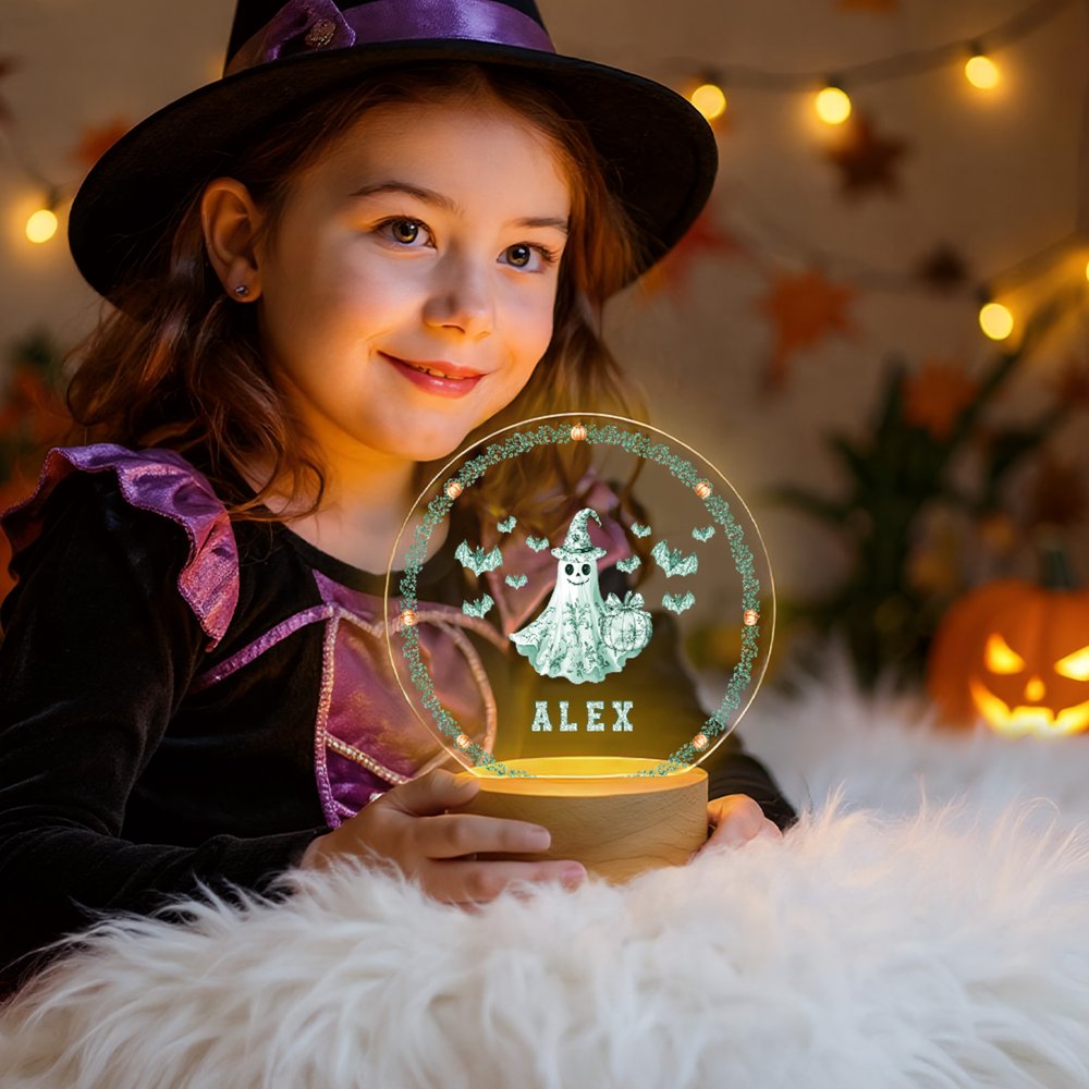 En underbar Halloween-present till barn och familj. Med sina skrämmande figurer och ett personligt namn förmedlar den omtanke och värme. Att ge bort denna nattlampa under Halloween-säsongen delar inte bara med sig av feststämning - den blir en uppskattad del av hemlivet, skapar bestående minnen och firar säsongens glädje.