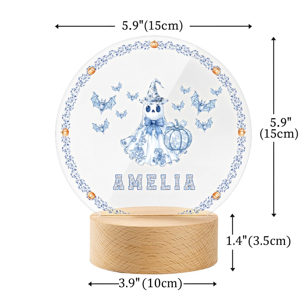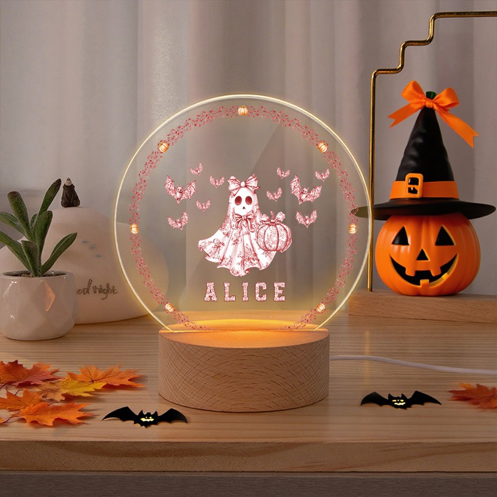 Med den distinkta Toile De Jouy-stilen ger den här nattlampan en konstnärlig charm till alla utrymmen. Anpassa den med lekfulla spöken, pumpor och fladdermöss för att skapa en anpassad Halloween-scen. Du kan också lägga till ett namn, vilket gör varje föremål unikt.