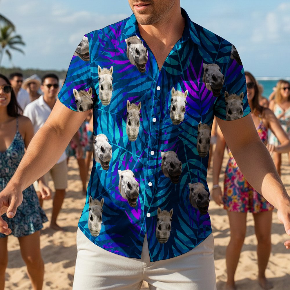 | Funktion: | Klassisk öppen krage, hudvänlig, Hawaii-tema, tropiskt mönster, design med ansiktsfoto |