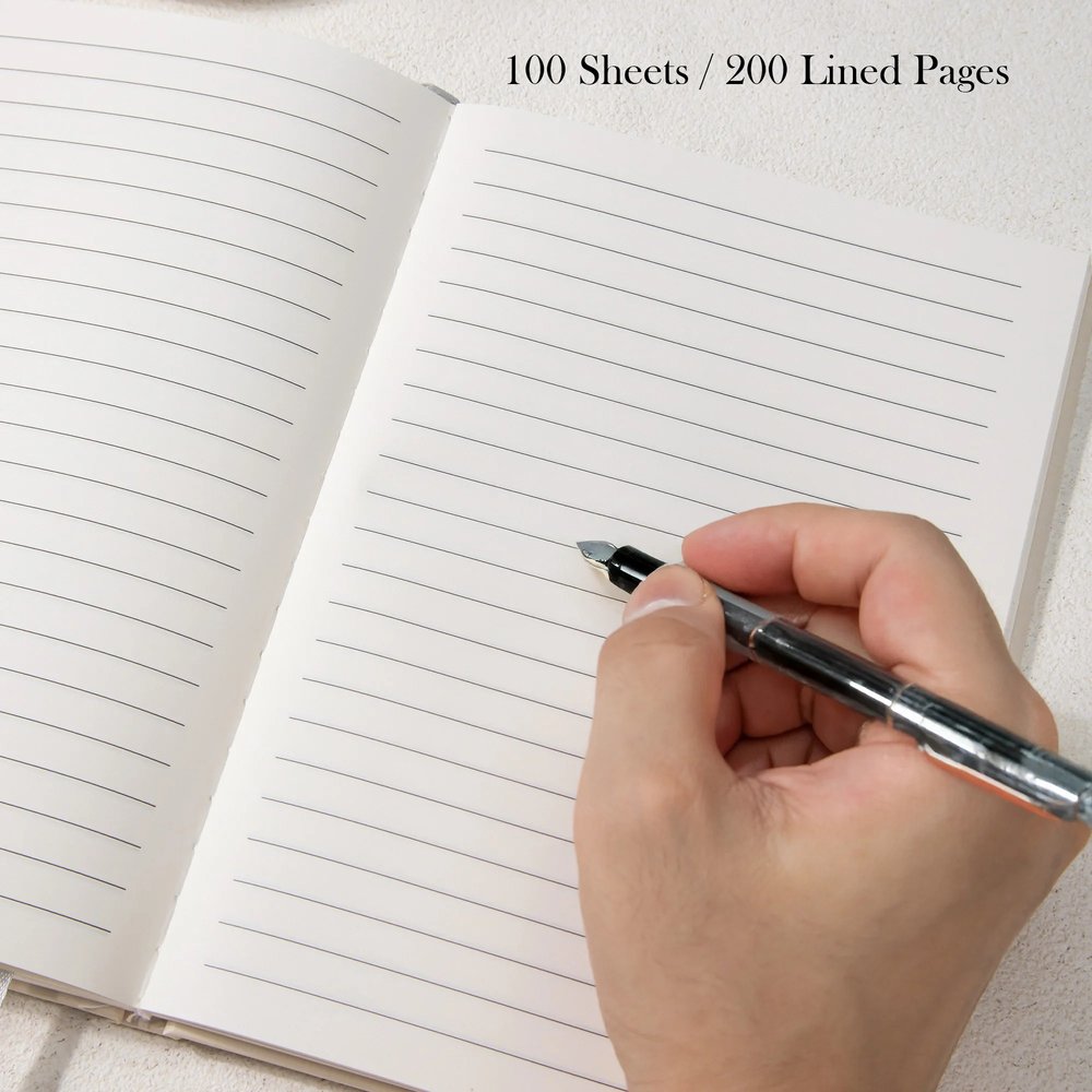 Den bärbara A5-storleken och de 200 sidorna gör den här anteckningsboken idealisk för anteckningar, dagboksanteckningar, skisser och planering. Den passar både författare, konstnärer och organisatörer. Ett inbyggt bokmärke med band hjälper dig att snabbt hitta rätt, och formatet fungerar bra för mötesanteckningar, resejournaler, bullet journaling och checklistehantering.
