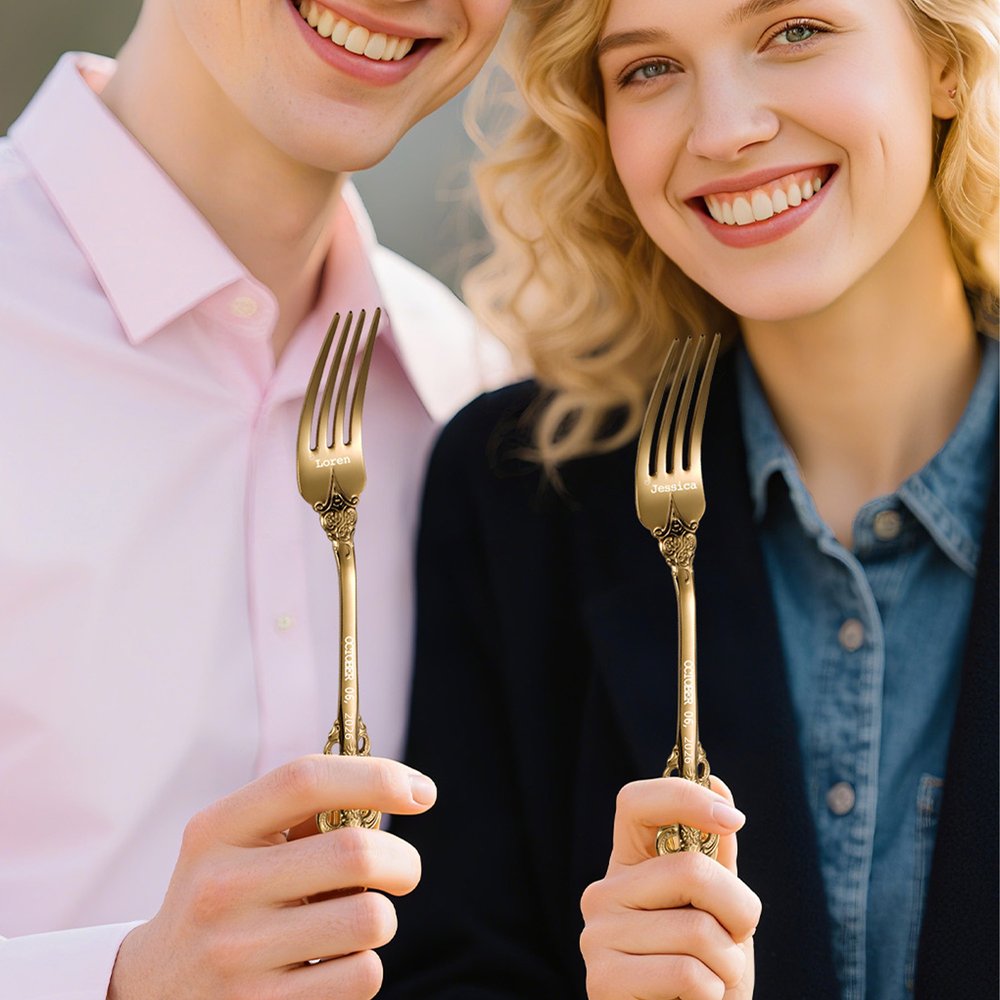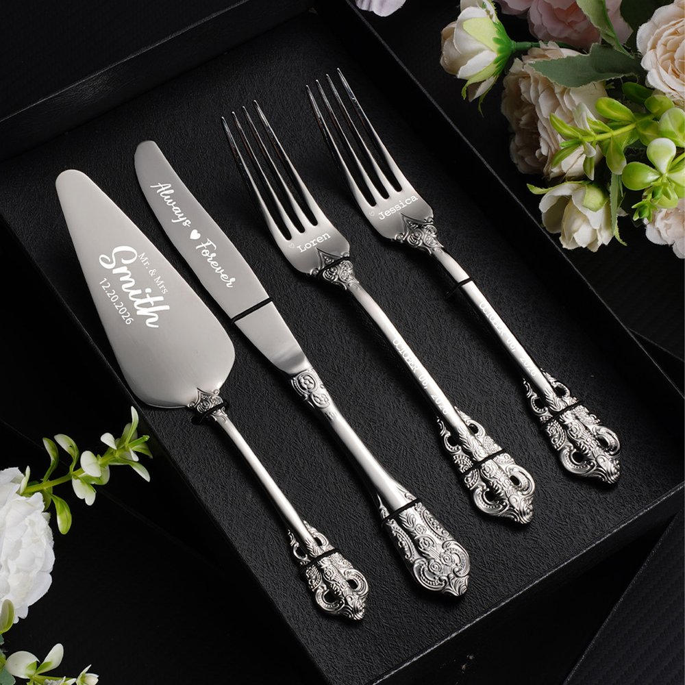 Detta set är mer än bara bestick; det är en unik minnessak för par eller nygifta, som symboliserar kärlek och värdefulla minnen. Oavsett om det ges bort på bröllop, möhippor, förlovningar eller årsdagar förkroppsligar det det obrytbara bandet och det livslånga löftet mellan dig och mottagaren. En praktisk men ändå sentimental skatt som gör varje firande till ett ögonblick att minnas. Den medföljande utsökta presentförpackningen gör det till ett perfekt val för gåvor och ger en speciell betydelse till detta värdefulla föremål.