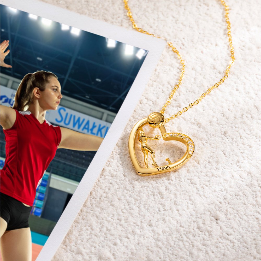 This volleyball girls' pendant is designed using two classic moves from the volleyball game, vividly showing the characteristics of this sport. It is paired with a classic and simple heart-shaped design for timeless elegance.