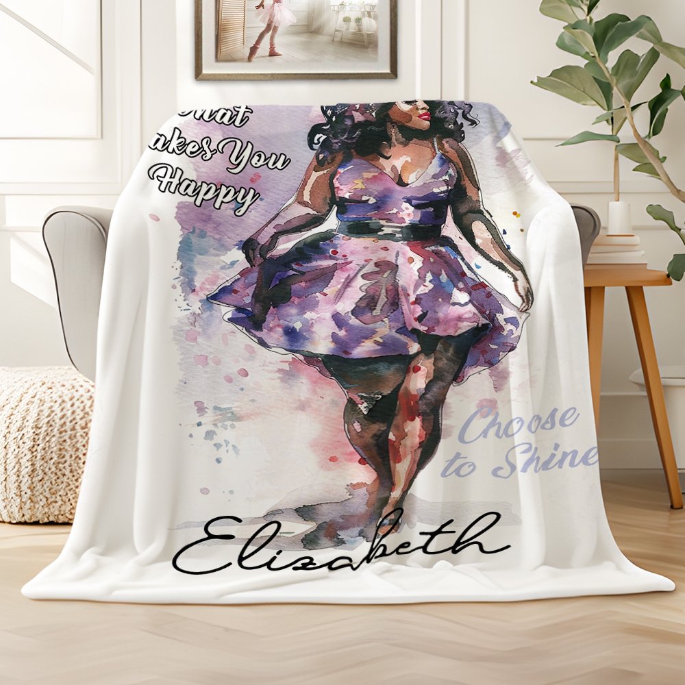 Denna filt är designad för att inspirera till självförtroende och självkärlek och har en vacker illustration av en kurvig tjej. Varje filt kan anpassas med ett namn, vilket gör den till en verkligt unik gåva till den speciella BBW-tjejen eller kvinnan i ditt liv. Påminner alla om att omfamna sin unikhet.