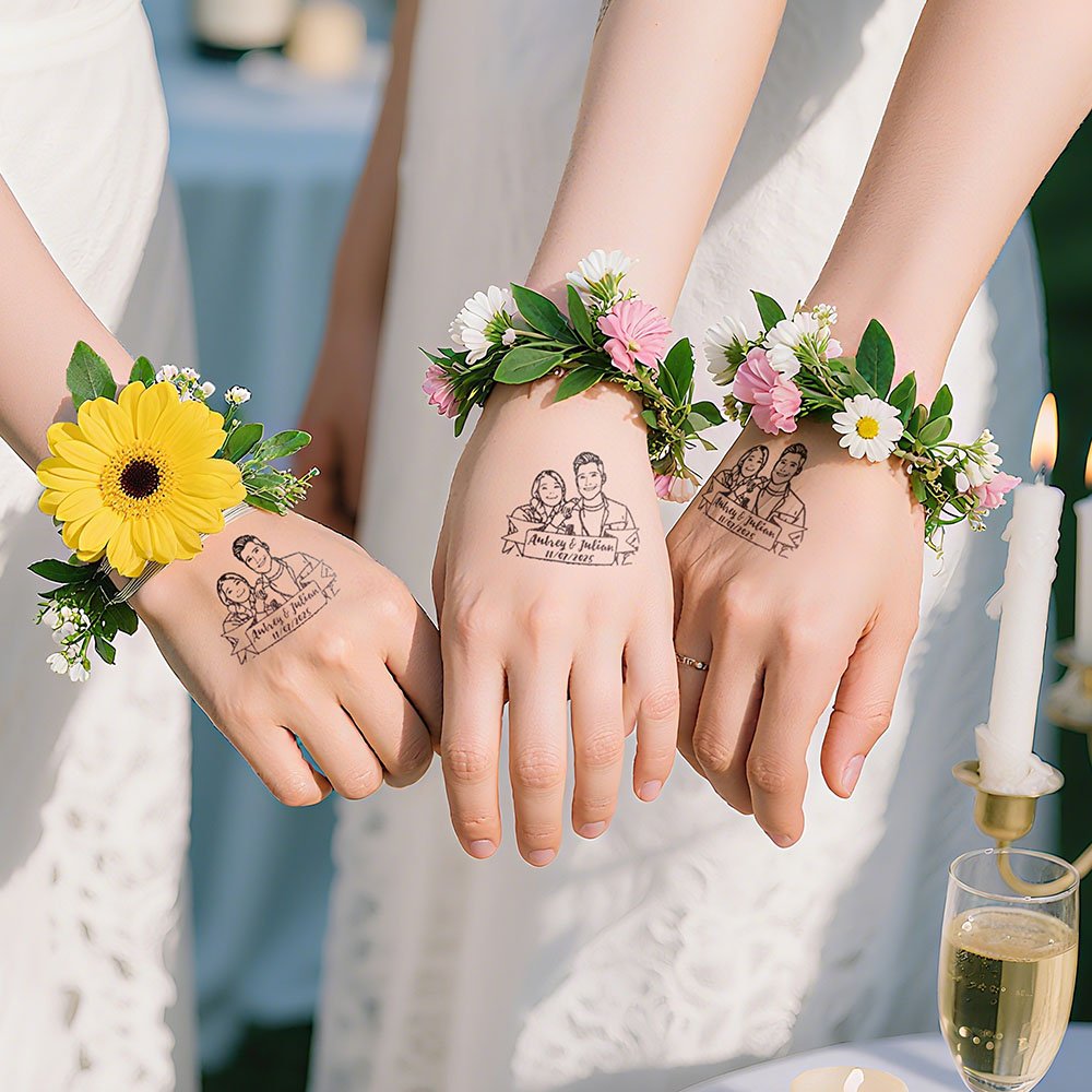 Dessa tatueringar är tillverkade av högkvalitativa, giftfria material och är skonsamma mot huden, vilket gör dem säkra för gäster i alla åldrar. De är vattentäta och svettbeständiga, så du kan dansa, simma och fira utan att oroa dig. Varje design håller i 2 till 8 dagar och fungerar som en varaktig påminnelse om en vacker dag.