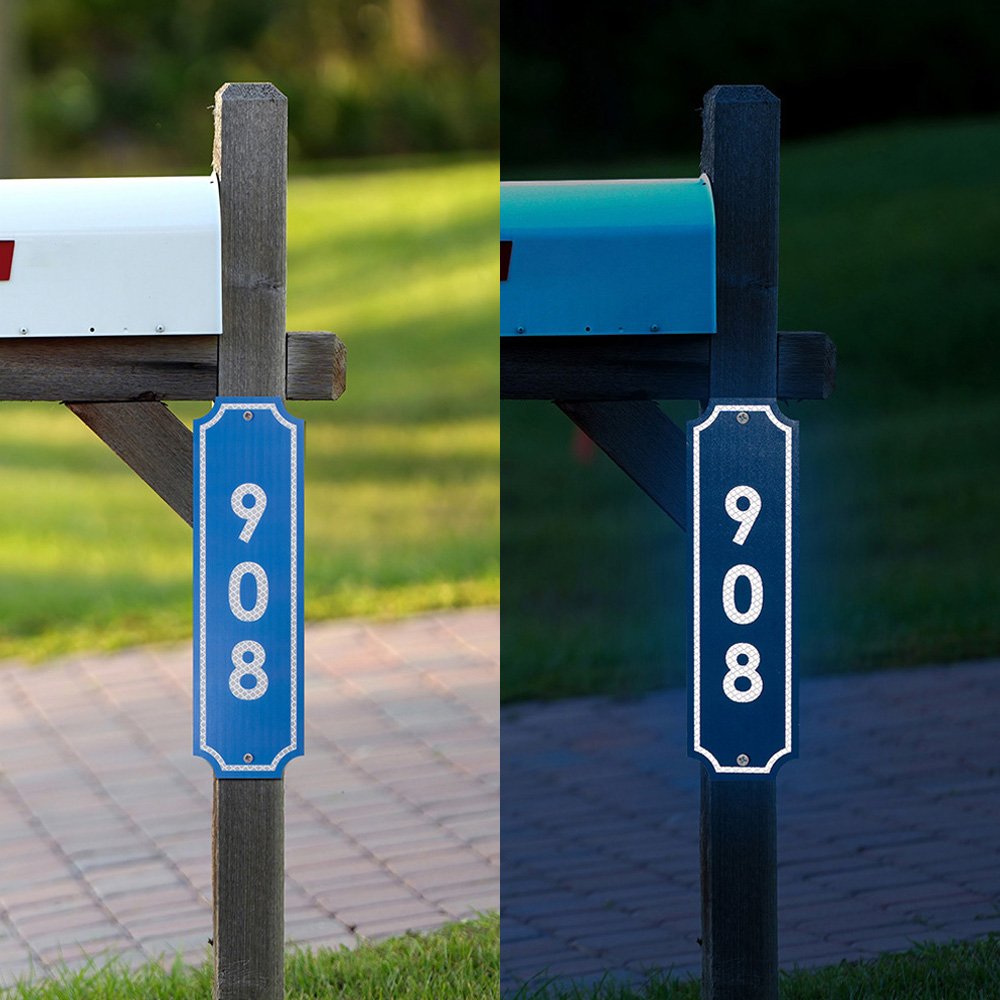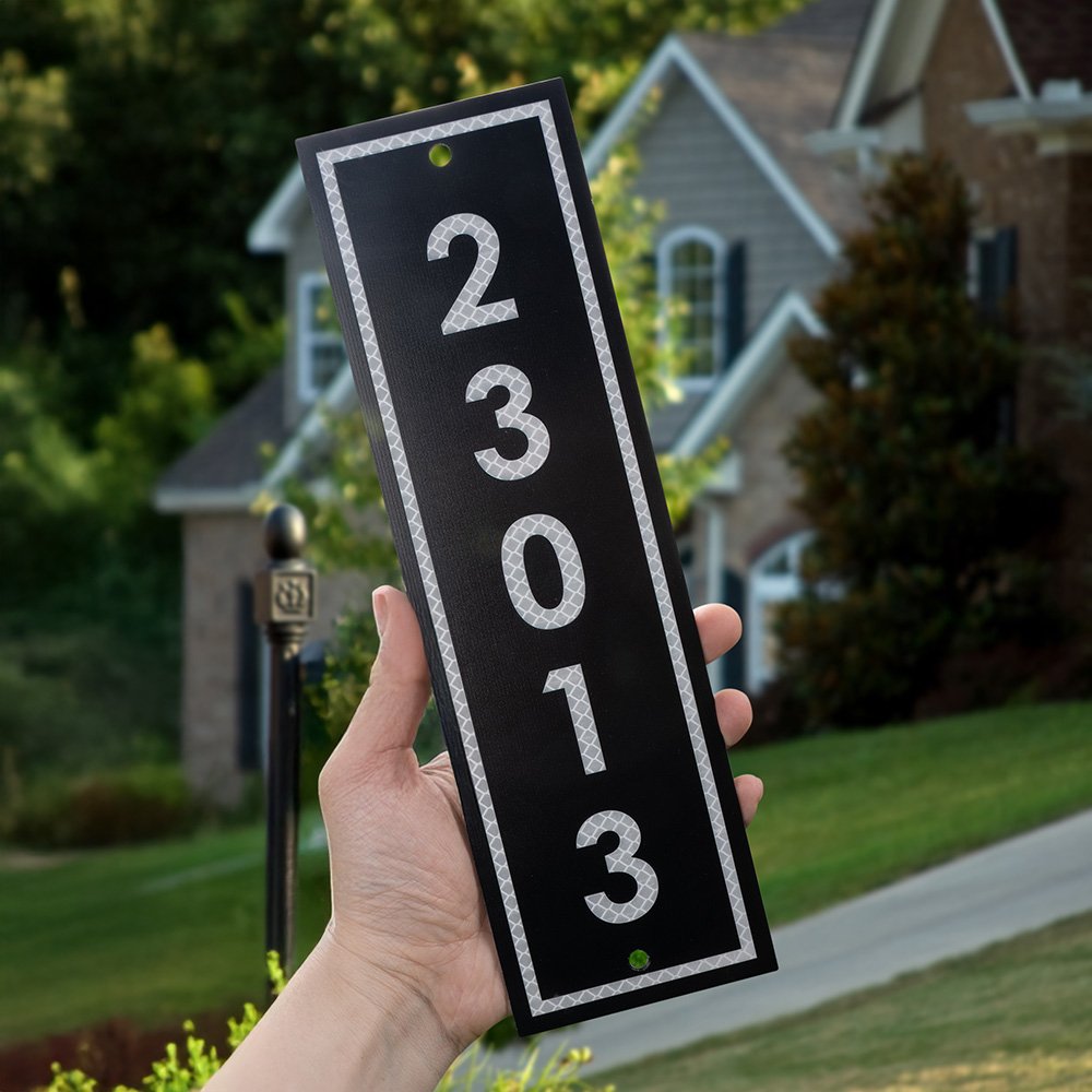 Adressskylten är utformad med en reflekterande film och kan placeras på brevlådestolpen eller andra synliga platser. Den reflekterande ytan säkerställer synlighet även i svagt ljus och ger en tydlig vägledning till ditt hem, så att besökare lätt kan hitta ditt hem även på natten.
