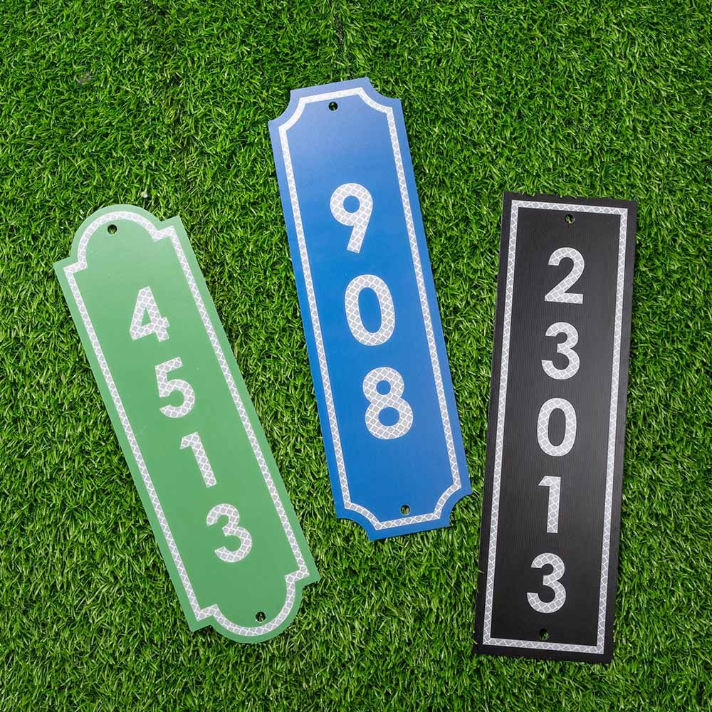 Vår adressskyltplatta har 3 stilar och 3 färger att välja mellan, medan den kan rymma upp till fem siffror långa dörrnummer. Du behöver bara ange ditt eget dörrnummer för att skapa en personlig adressplatta som är skräddarsydd just för dig.