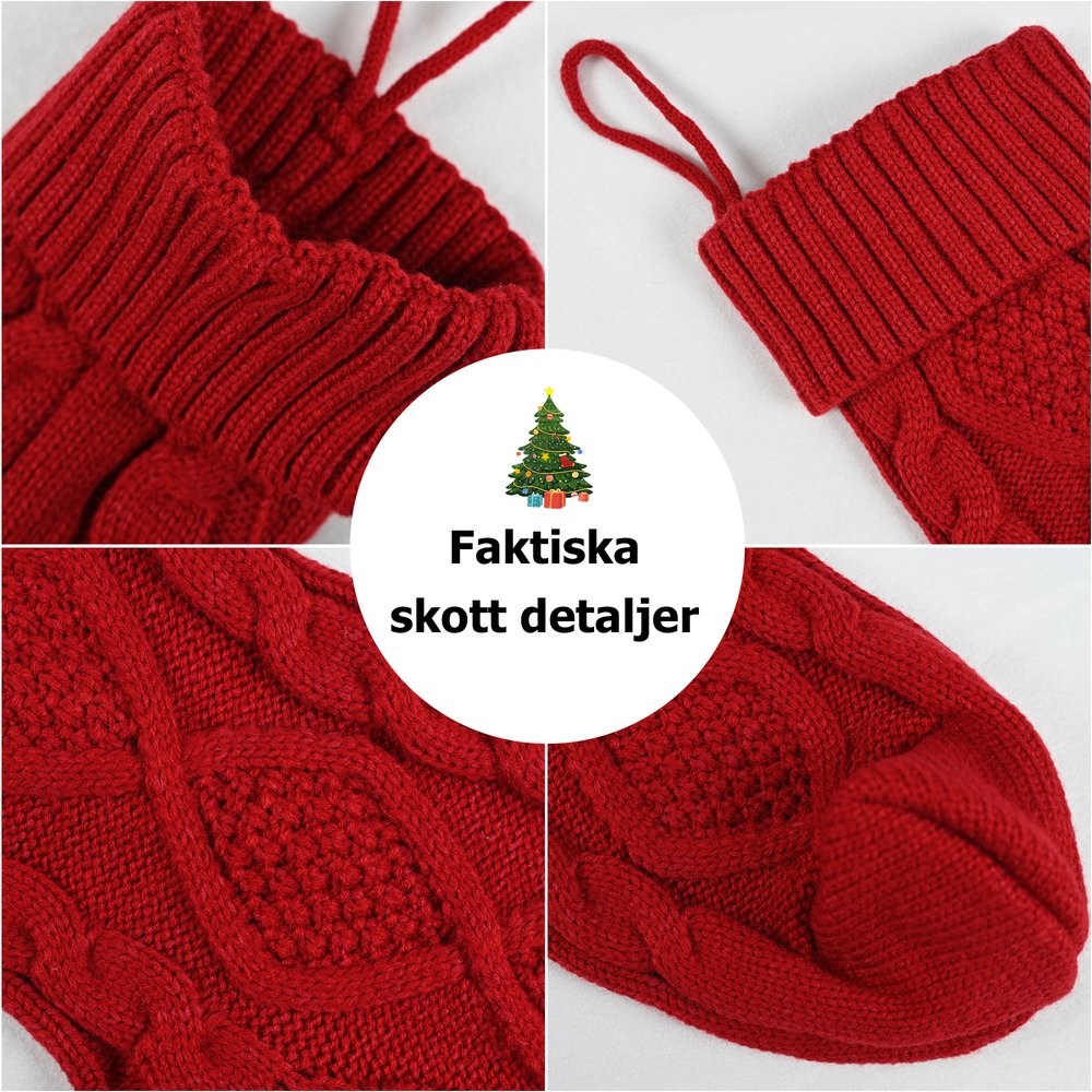 Julstrumporna är tillverkade av material av hög kvalitet, mjuka och bekväma att ta på, samt hållbara. Den noggrant genomförda vävningstekniken garanterar att strumporna är hållbara och inte lätt går sönder eller deformeras.