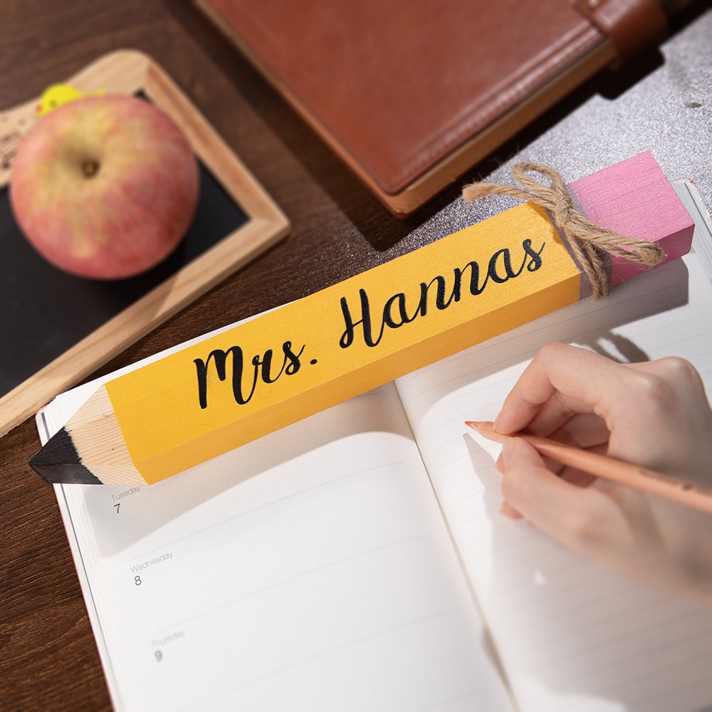 Byt ut den gamla tråkiga namnskylten mot något roligt! Varje penna mäter ca 11" X 1,57". Du kan själv göra den personlig med din favoritlärares namn. Placera på lärarens skrivbord, eller använd en kardborreband för att hänga på klassrumsdörren eller väggen!