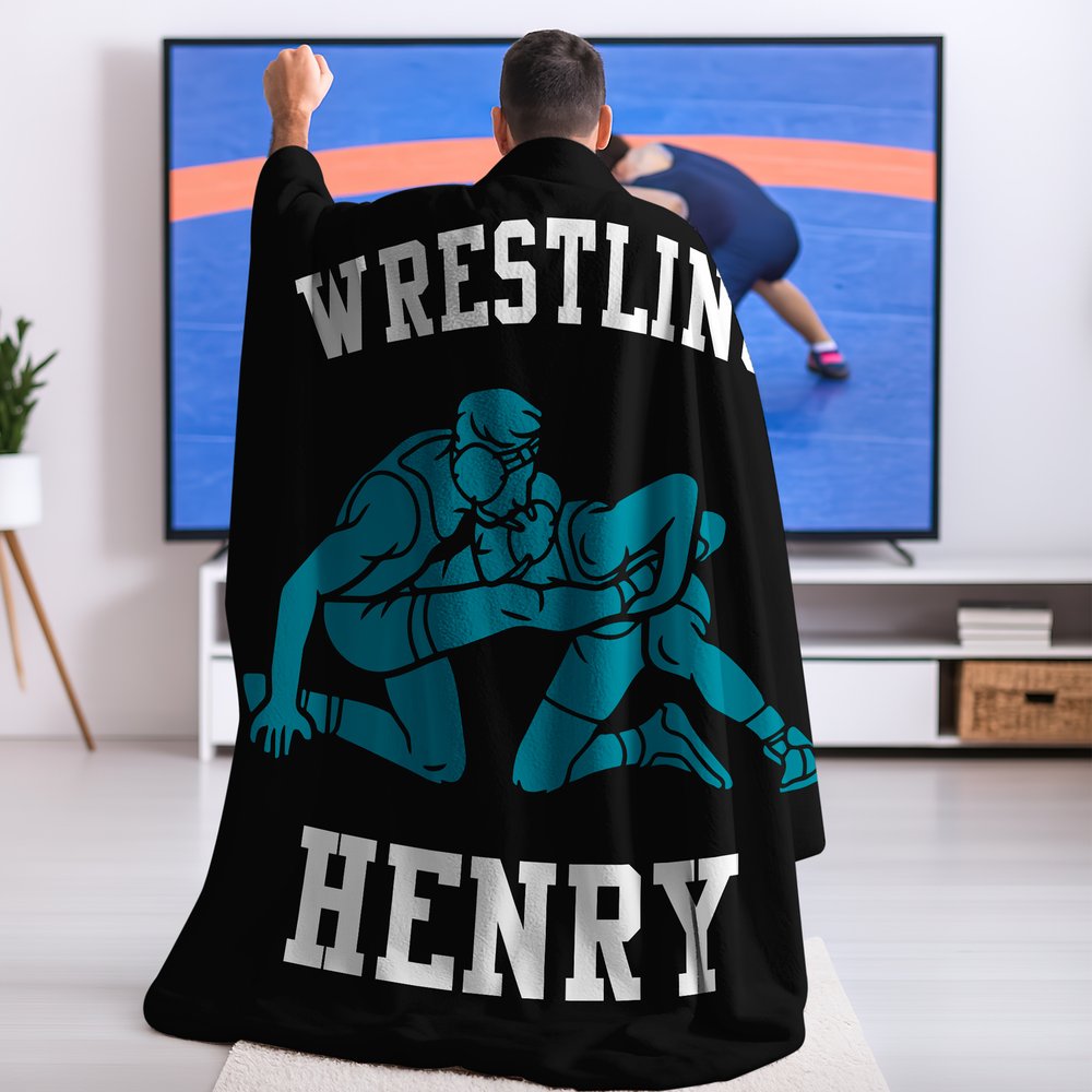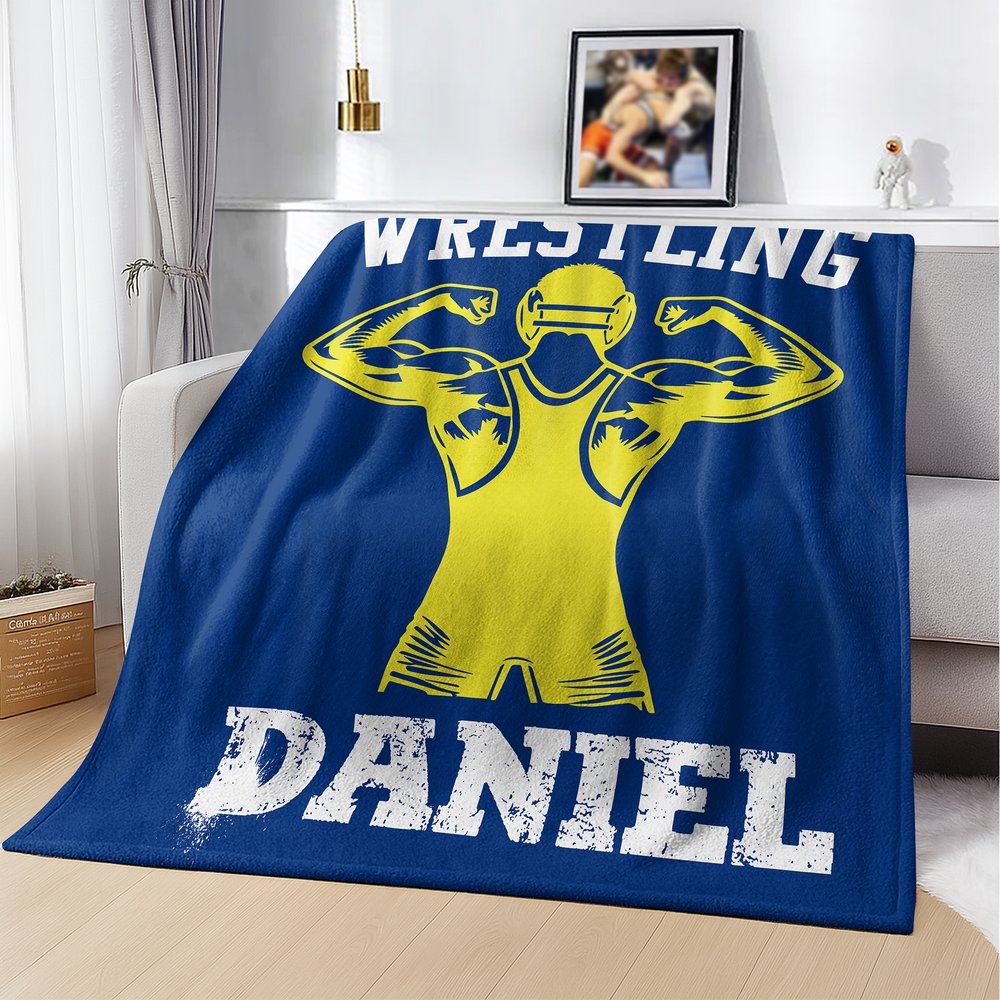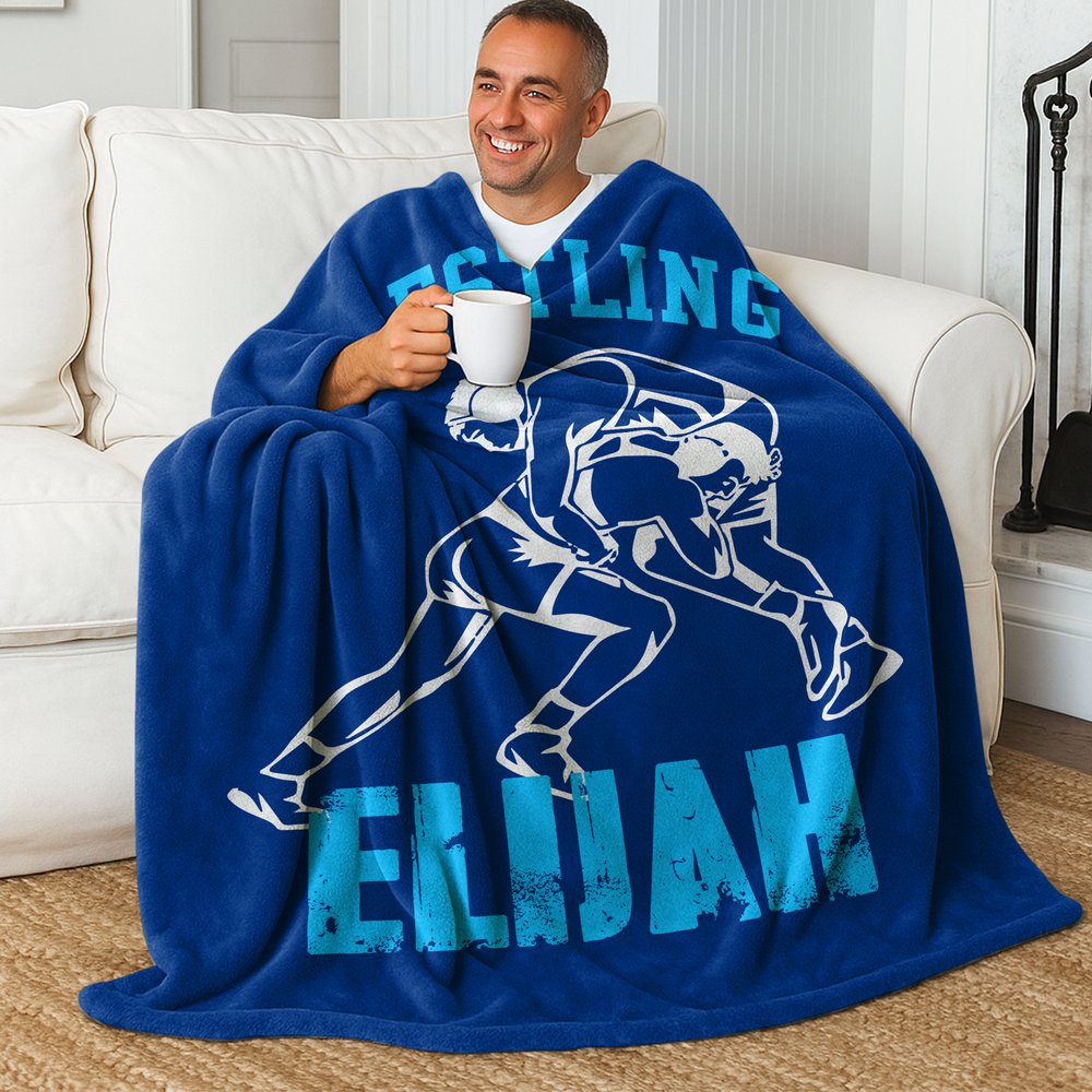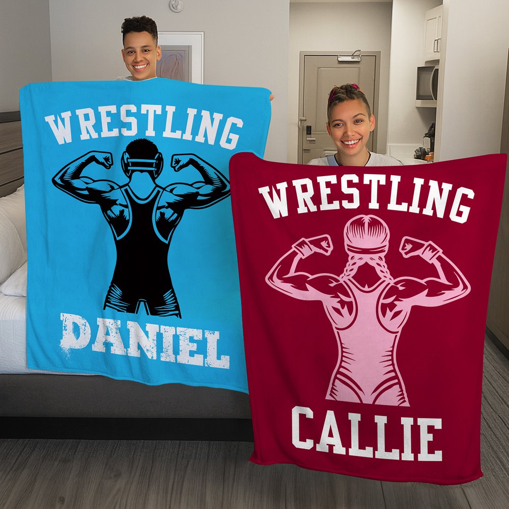 Den här filten har silhuetter av manliga och kvinnliga brottare i slående poser, som på ett levande sätt visar brottningens kraft och intensitet. Den här filten kan anpassas med ditt namn och blir ett unikt föremål som visar din kärlek till brottning samtidigt som den förmedlar en personlig koppling till sporten genom sin unika design, vilket ger en sportig touch och personlig touch till alla utrymmen.