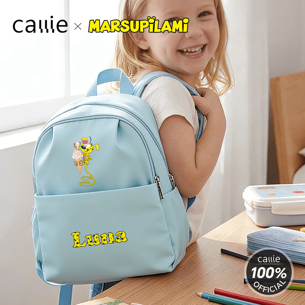 Du kan välja det söta tecknade bildmönstret av Tail-Bouncing Marsupilami, som skapades av den belgiska serietecknaren André Franquin 1952. Marsupilami är en djungelvarelse med gul päls, svarta fläckar och en superflexibel, lång svans. Denna ryggsäck har också stöd för personlig namnanpassning och finns i 7 livfulla färger, vilket ger den en unik och anpassad känsla.