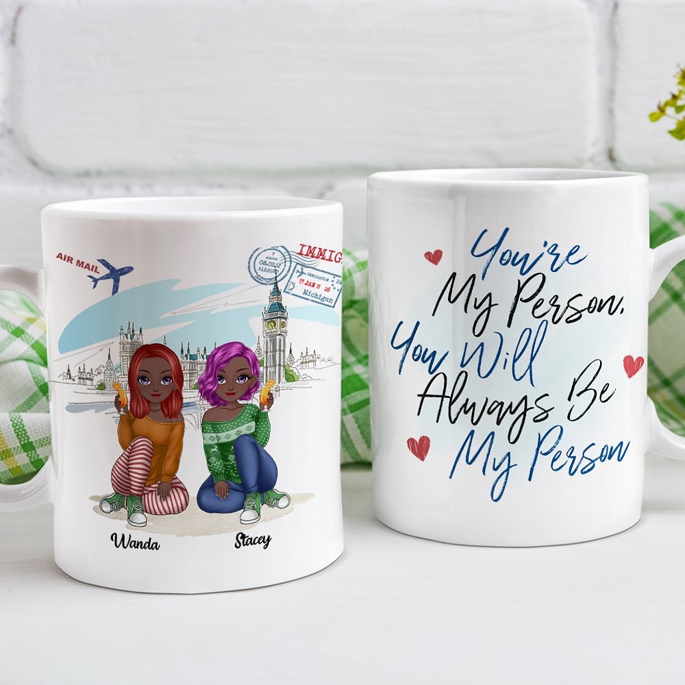 Personlig Du kommer alltid att vara min person Resemotiv Vit keramikmugg Bestie Gåvor för kvinnor för kontor och hem