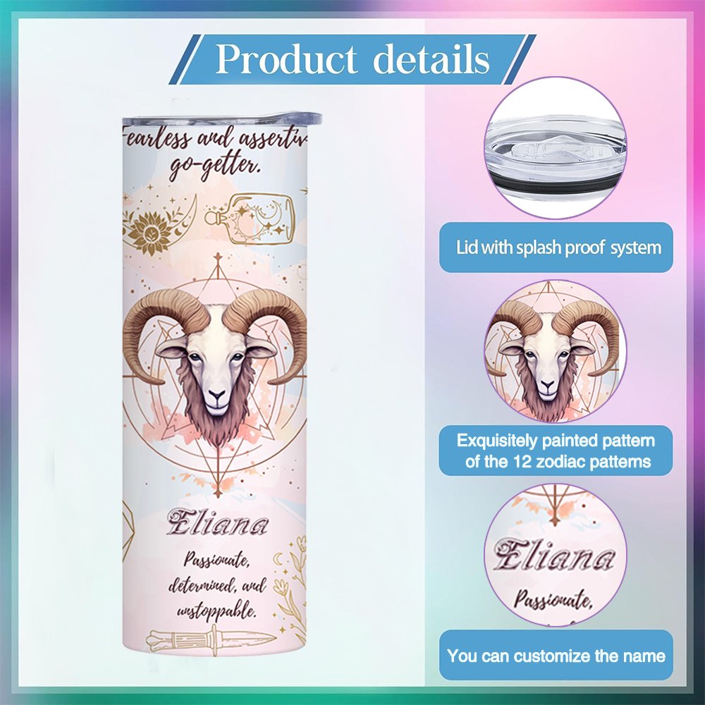 Embrace the power of astrology with this tumbler. Each tumbler features an affirmation related to the chosen zodiac sign, serving as a positive and uplifting reminder for the recipient. Whether it's a motivational quote or a characteristic trait associated with the zodiac sign, the affirmation adds an extra layer of significance to the tumbler, making it more than just a regular cup.